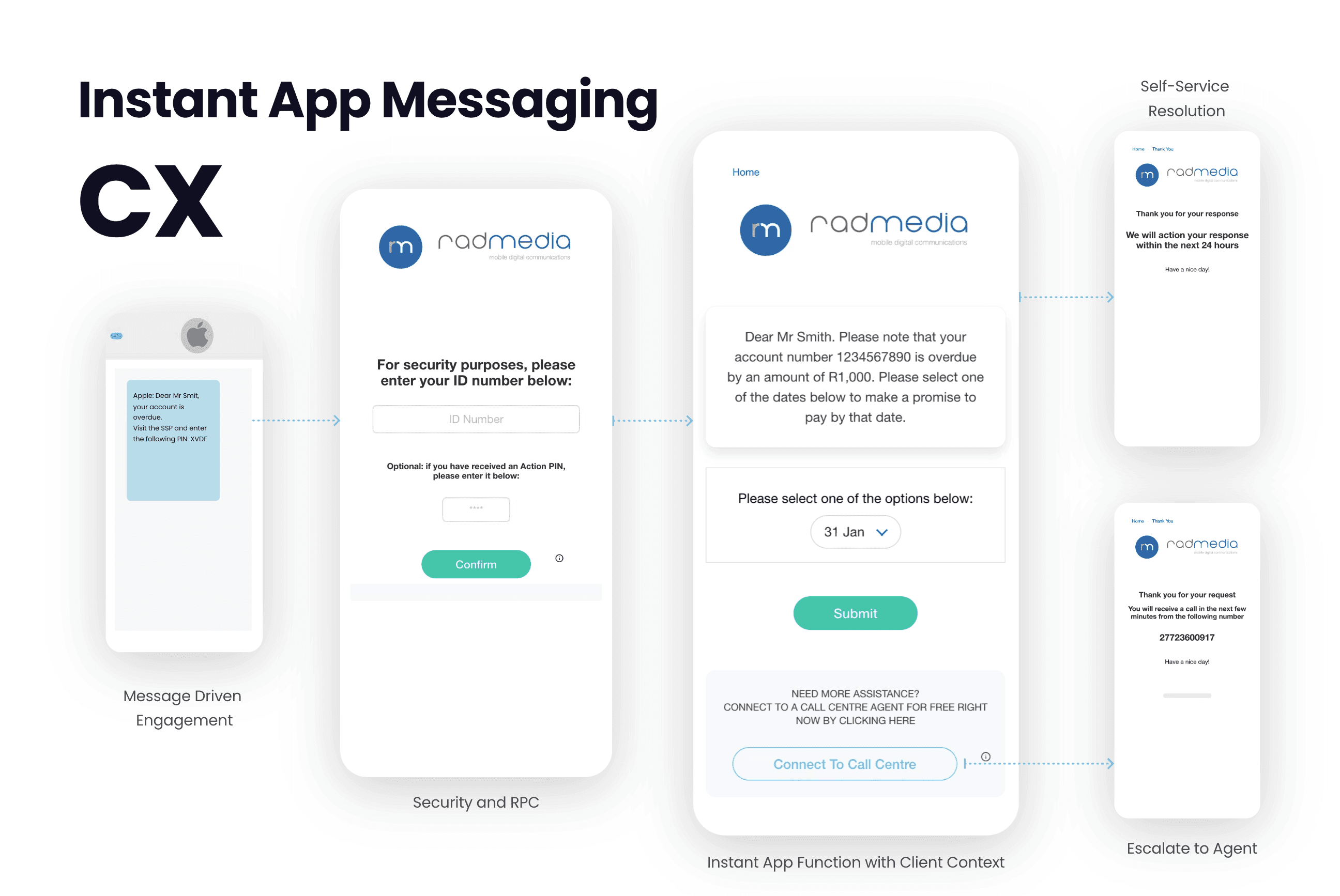 RadMedia goes far beyond chatbots and messaging. We don’t just start conversations; we drive automated resolutions right inside the message itself. Whether it’s billing, collections, or compliance - we help you close the loop without escalating to contact centre agents or requiring app downloads.